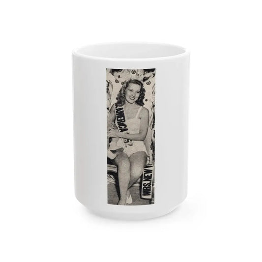 Penny Duncan #70 - [Pages 42] 1 small cropped B&W Miss America Title Pin-Up Photo from REAL FOR MEN Mag. Jan. '53 (Vintage Female Icon) White Coffee Mug