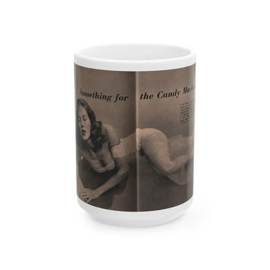 Penny Duncan #21 - [Pages 48 & 49] Pages 3 & 4 of 4 with, Penny+6 B&W Photos & Article from SAGA Men's Mag. July '56 (Vintage Female Icon) White Coffee Mug