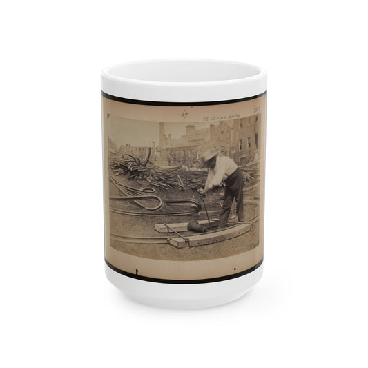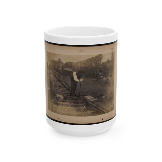Railroad Construction Worker Straightening Track; Pile Of Twisted Rails In Background. 1862-63 (U.S. Civil War) White Coffee Mug