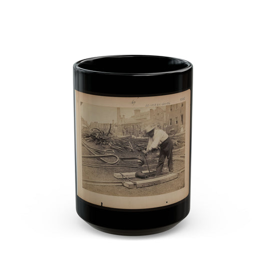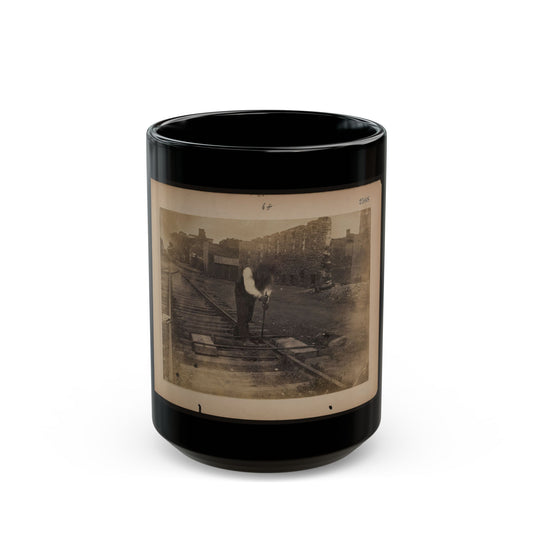 Railroad Construction Worker Straightening Track; Pile Of Twisted Rails In Background. 1862-63 (U.S. Civil War) Black Coffee Mug