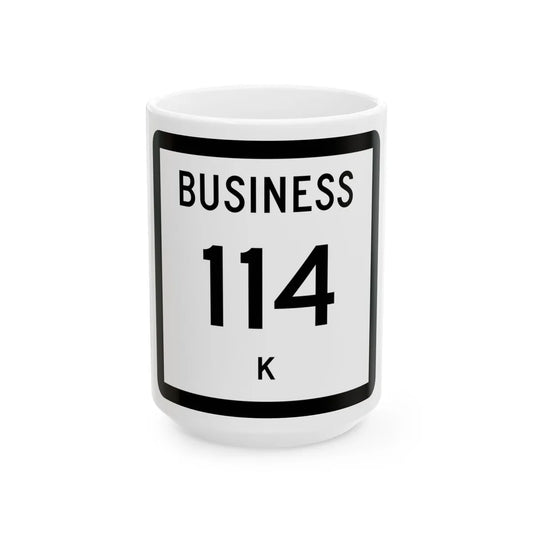 Texas Business 114-B (Texas) (Road Sign) White Coffee Mug