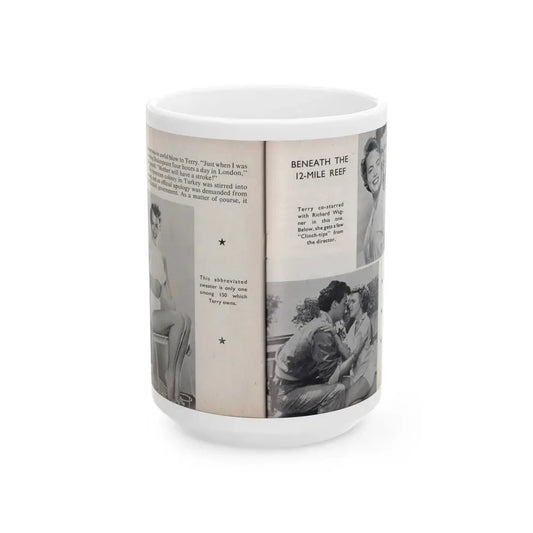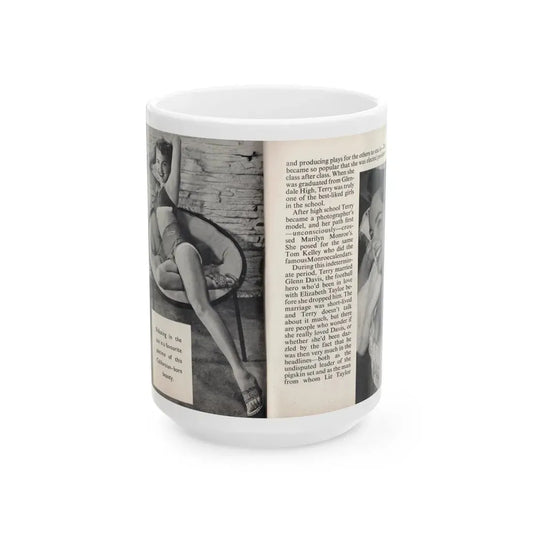 Terry Moore #442 - 66 PHOTOGRAPHS OF Terry MOORE U.K. Pocket Mag. Pages 14 & 15 (Vintage Female Icon) White Coffee Mug