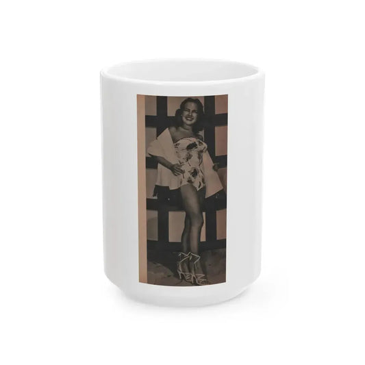 Terry Moore #588 - 10.5x14 Modern Screen '54 Magazine 2 Pages 1 Centerfold B&W Pin-Up plus 2 small ones (Vintage Female Icon) White Coffee Mug