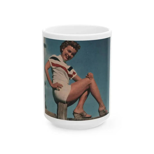 Terry Moore #516 - 4x6 2-Piece Color Full Body Swimsuit Cheesecake Photo from Early 50's (Vintage Female Icon) White Coffee Mug