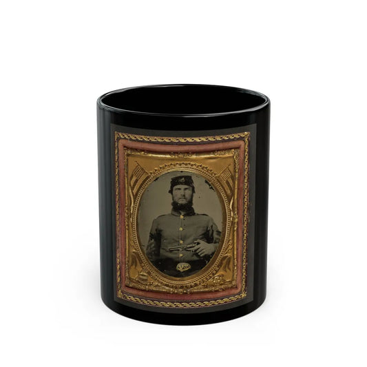 Unidentified Soldier In Union Corporal's Uniform Holding Colt Revolver To Chest (U.S. Civil War) Black Coffee Mug