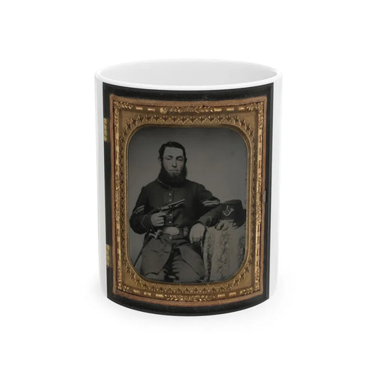 Unidentified Soldier In Union Corporal's Uniform Holding Revolver To Chest (U.S. Civil War) White Coffee Mug