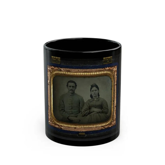 Unidentified Soldier In Union First Sergeant's Uniform And Unidentified Woman In Dress (U.S. Civil War) Black Coffee Mug