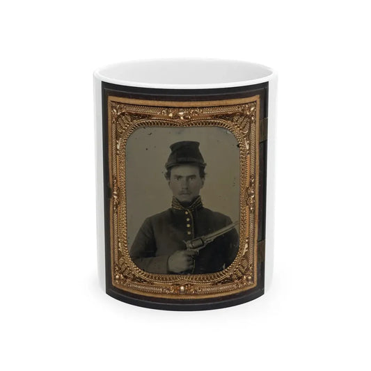 Unidentified Soldier In Union Cavalry Uniform With Revolver (U.S. Civil War) White Coffee Mug