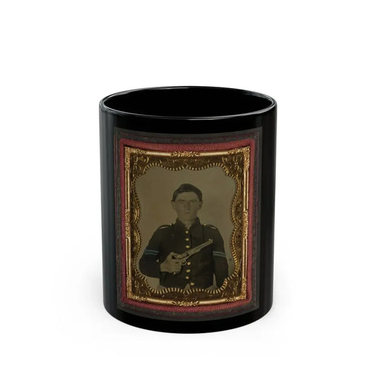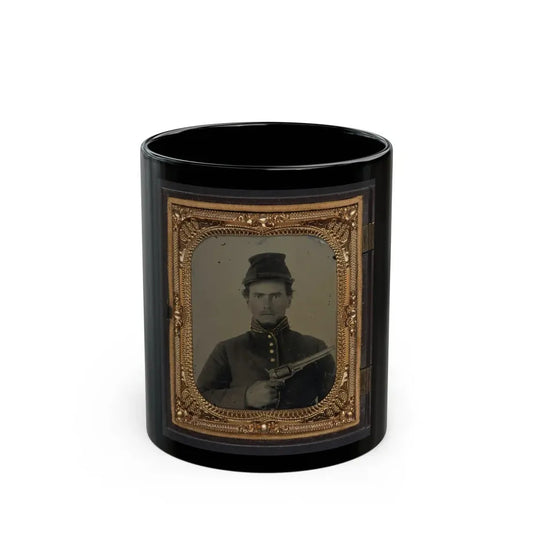 Unidentified Soldier In Union Corporal's Uniform Holding Colt Revolver To Chest (U.S. Civil War) Black Coffee Mug