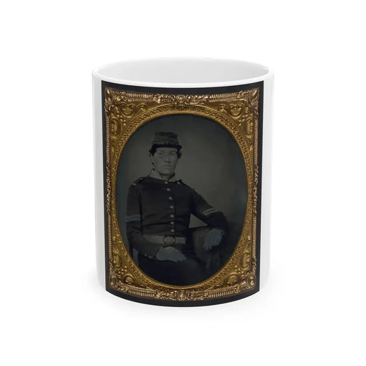 Unidentified Soldier In Union Corporal's Uniform, Infantry Kepi, And U.S. Belt Plate With Musket And Cartridge Box (U.S. Civil War) White Coffee Mug