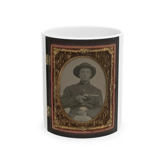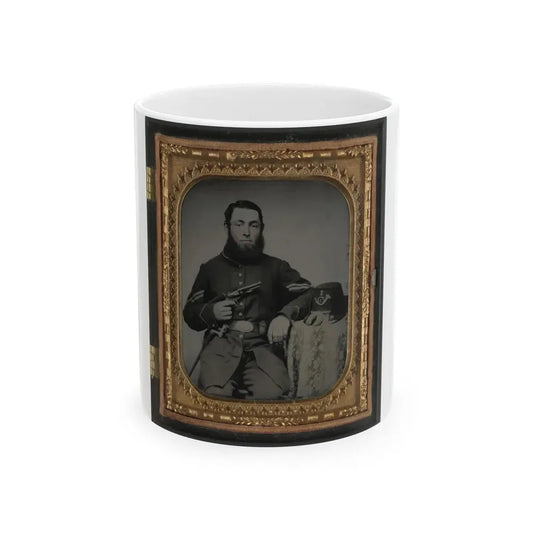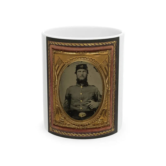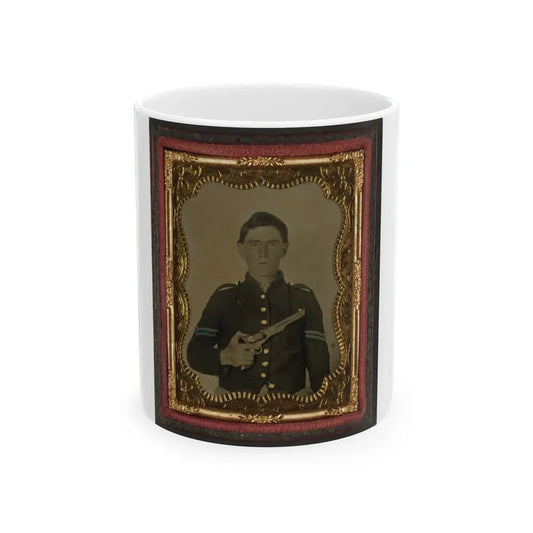 Unidentified Soldier In Union Corporal's Uniform Holding Colt Revolver To Chest (U.S. Civil War) White Coffee Mug