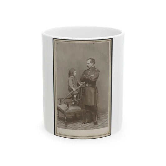 Unidentified Soldier In Union First Lieutenant's Uniform And Child In Zouave Uniform With Model 1860 Cavalry Saber (U.S. Civil War) White Coffee Mug
