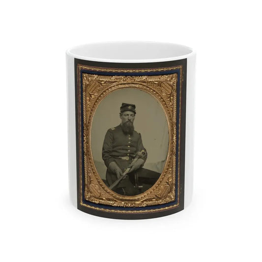 Unidentified Soldier In Union First Lieutenant's Uniform With U.S. Model 1850 Staff And Field Officer's Sword (U.S. Civil War) White Coffee Mug