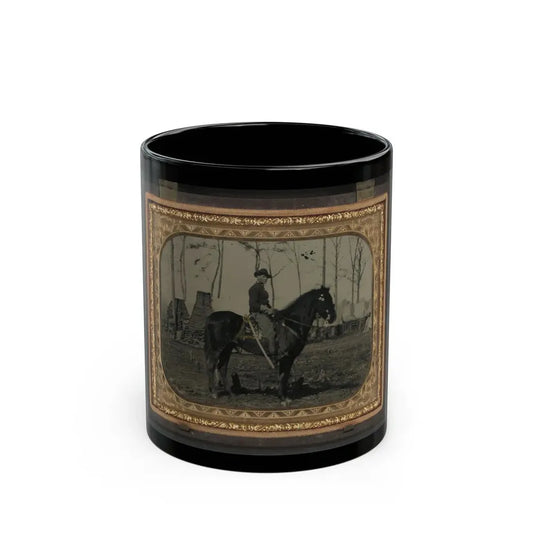 Unidentified Soldier In Union Cavalry Uniform, On Horse, With Cavalry Saber, In Front Of Encampment With Winter Chimneys (U.S. Civil War) Black Coffee Mug