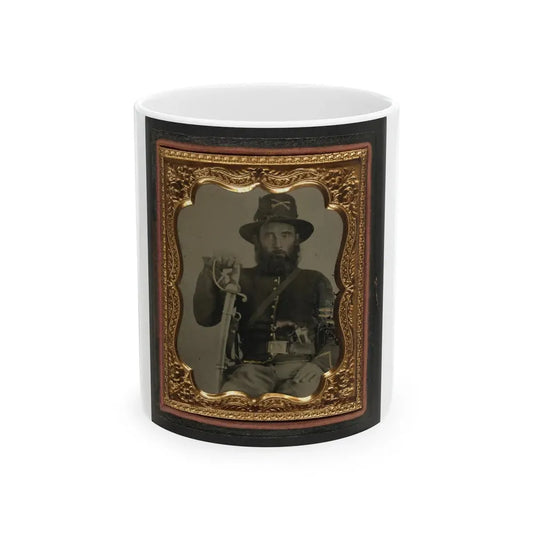 Unidentified Soldier In Union Cavalry Uniform Holding Cavalry Saber (U.S. Civil War) White Coffee Mug