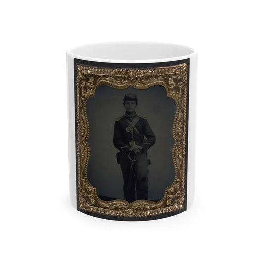 Unidentified Soldier In Union Captain's Uniform With Artillery Saber (U.S. Civil War) White Coffee Mug