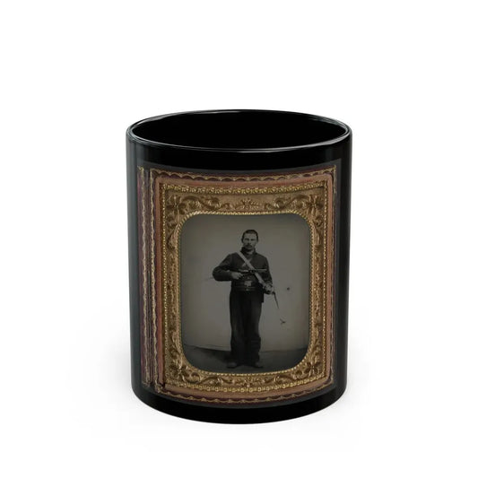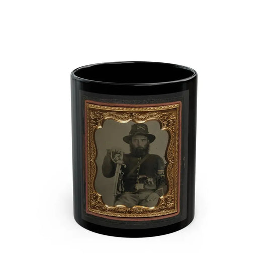 Unidentified Soldier In Union Cavalry Uniform And Hardee Hat With European Import Saber And French Lefaucheux Pinfire Revolver (U.S. Civil War) Black Coffee Mug
