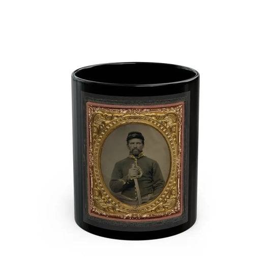Unidentified Soldier In Union Cavalry Uniform Holding Saber (U.S. Civil War) Black Coffee Mug