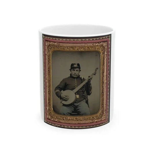 Unidentified Soldier In Union Cavalry Uniform With Banjo, Sword, And Pipe (U.S. Civil War) White Coffee Mug