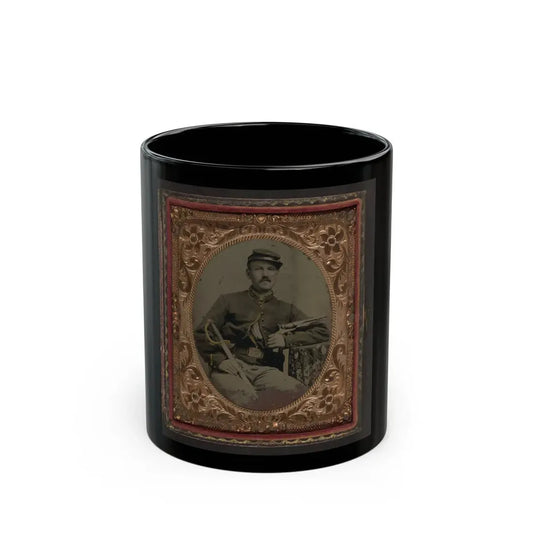 Unidentified Soldier In Union Cavalry Uniform Sitting With Saber (U.S. Civil War) Black Coffee Mug