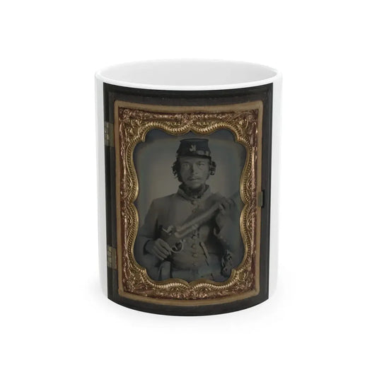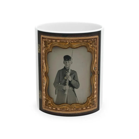 Unidentified Soldier In Uniform And Company K Hat With Musket; Confederate Or Union (U.S. Civil War) White Coffee Mug
