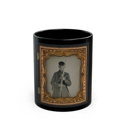 Unidentified Soldier In New York State Enlistedman's Uniform With Bayoneted Musket (U.S. Civil War) Black Coffee Mug