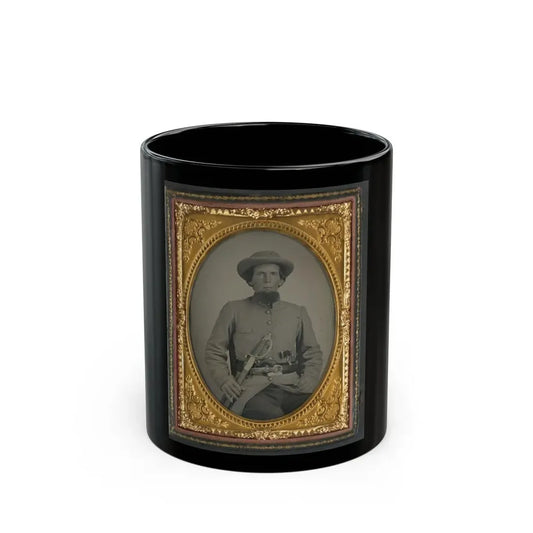 Unidentified Soldier In Confederate Uniform With Sword And Two Guns (U.S. Civil War) Black Coffee Mug
