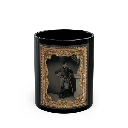 Unidentified Soldier In First Lieutenant's Uniform, Red Sash, Leather Gauntlets, And Spurs With Cavalry Sword (U.S. Civil War) Black Coffee Mug
