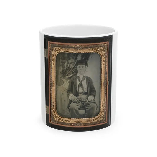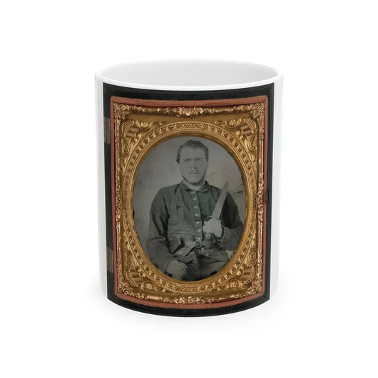 Unidentified Soldier In Confederate Uniform With Single Shot Percussion Pistol And D Guard Bowie Knife (U.S. Civil War) White Coffee Mug