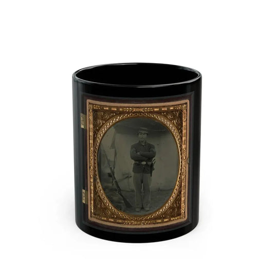 Unidentified Soldier In Infantry Sergeant Uniform With Holster And Musket In Front Of Tent (U.S. Civil War) Black Coffee Mug