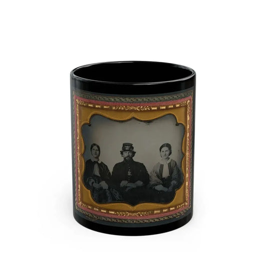 Unidentified Soldier In Infantry Uniform Sitting Between Two Women, Probably Relatives (U.S. Civil War) Black Coffee Mug