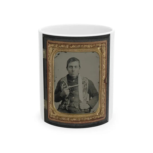 Unidentified Soldier In Confederate Uniform With Single Shot Percussion Pistol (U.S. Civil War) White Coffee Mug