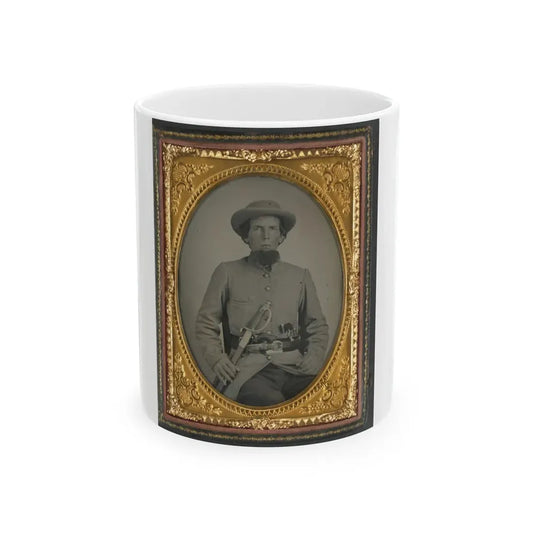 Unidentified Soldier In Confederate Uniform With Sword And Two Guns (U.S. Civil War) White Coffee Mug