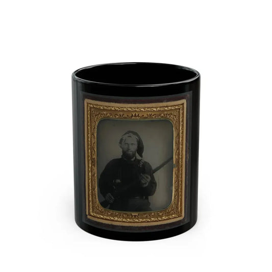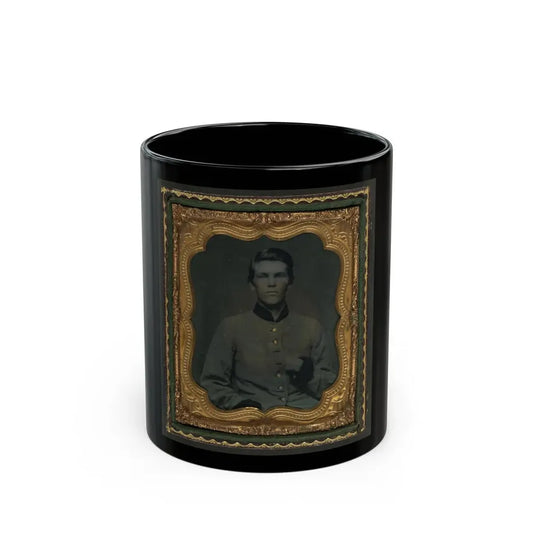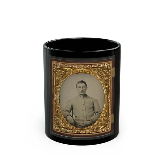 Unidentified Soldier In Confederate Uniform And C.S. Oval Belt Plate With Rifle (U.S. Civil War) Black Coffee Mug