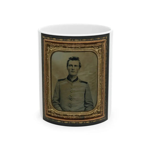 Unidentified Soldier In Confederate Uniform And C.S. Oval Belt Plate With Rifle (U.S. Civil War) White Coffee Mug