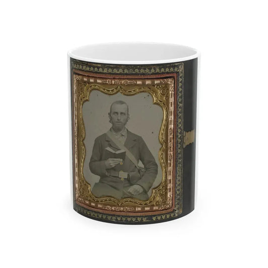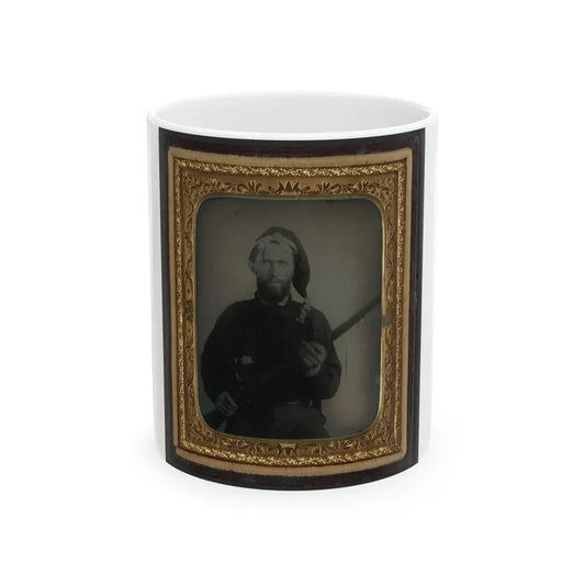 Unidentified Soldier in Confederate Uniform and Georgia Frame Belt Buckle With Bayoneted Musket (U.S. Civil War) Color Changing Coffee Mug 11oz