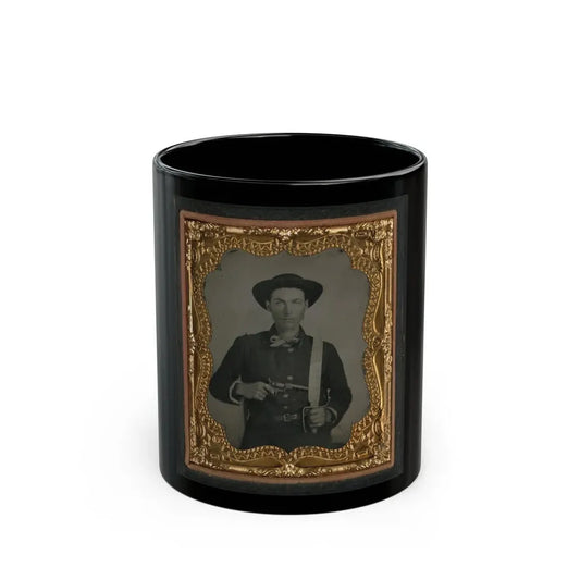 Unidentified Soldier In Confederate Uniform And Round Hat With Baby Colt Dragoon Revolver And D-Guard Bowie Knife (U.S. Civil War) Black Coffee Mug