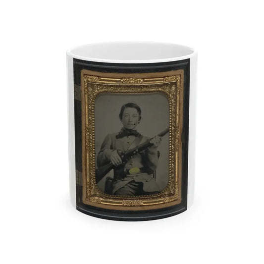 Unidentified Soldier In Confederate Uniform And Craig's Rifles, Or 28th Virginia Infantry Regiment, Kepi With Musket (U.S. Civil War) White Coffee Mug