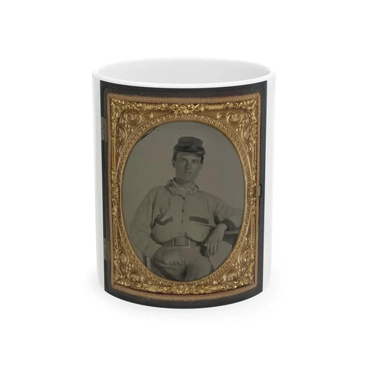 Unidentified Soldier In Confederate Battleshirt, Kepi, And Wishbone Belt Buckle (U.S. Civil War) White Coffee Mug
