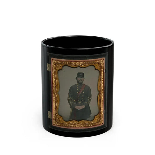 Unidentified Soldier In Confederate Captain's Uniform, Red Sash, And Kepi Marked V.V. (U.S. Civil War) Black Coffee Mug