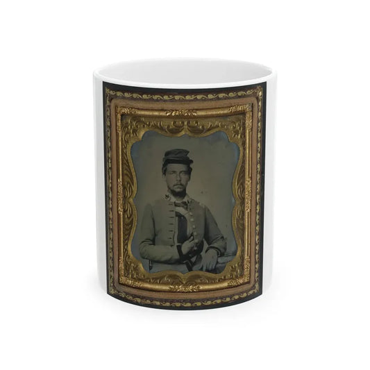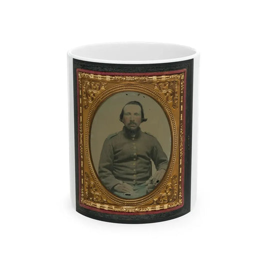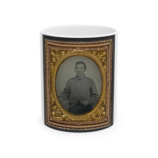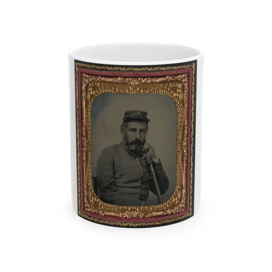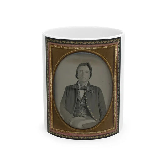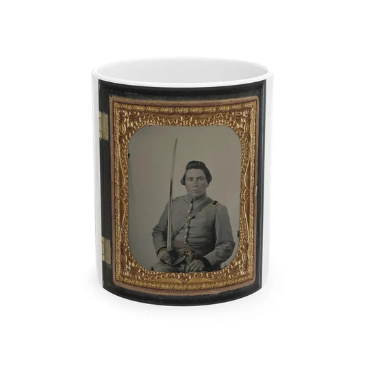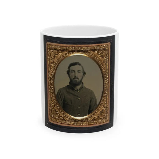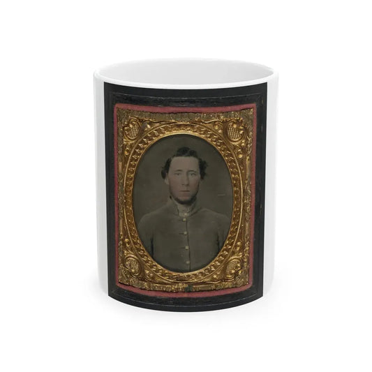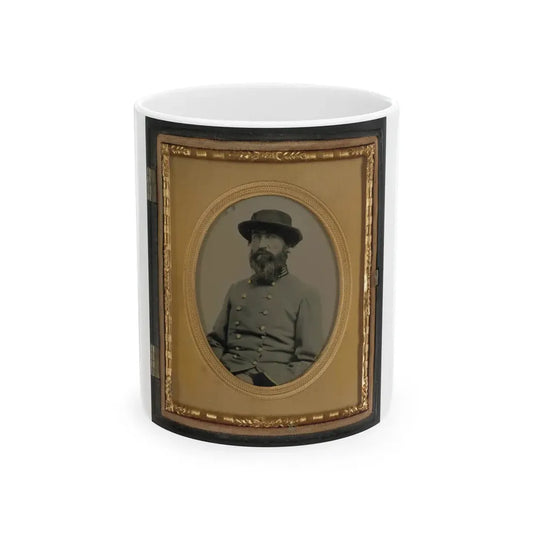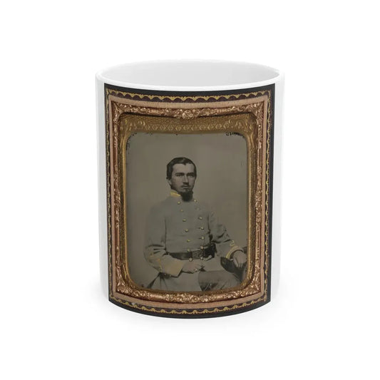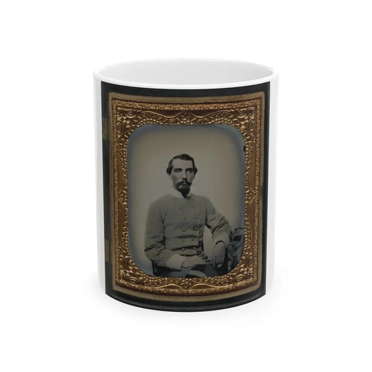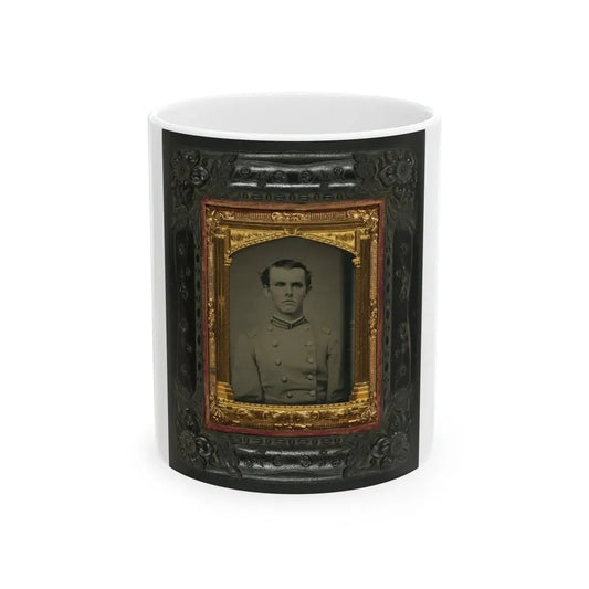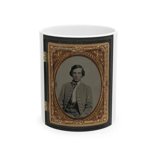 Unidentified Soldier In Confederate Double-Breasted Frock Coat With Single Row Of Braid Denoting The Rank Of Lieutenant (U.S. Civil War) White Coffee Mug
