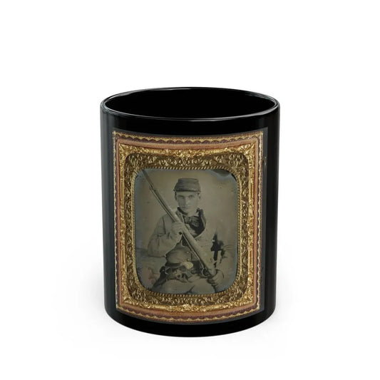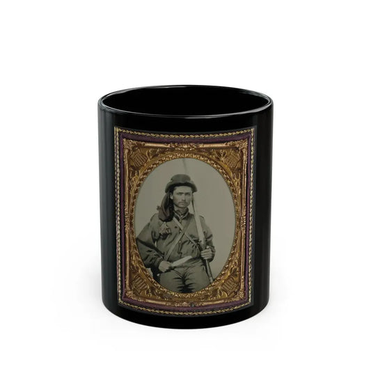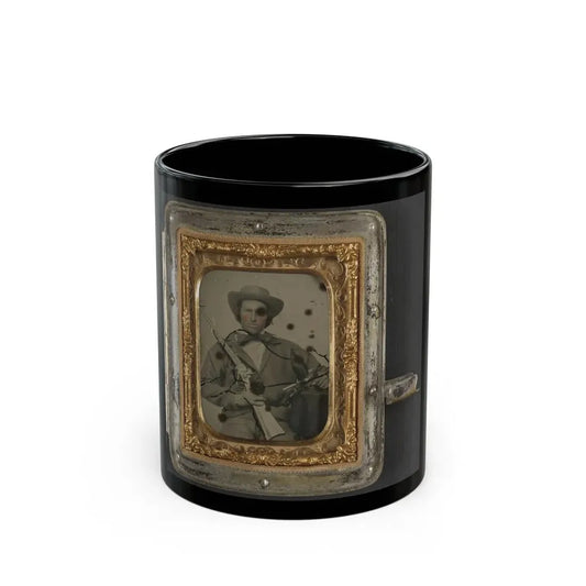 Unidentified Soldier In Confederate Infantry Uniform With Musket And Brass Framed Revolver (U.S. Civil War) Black Coffee Mug