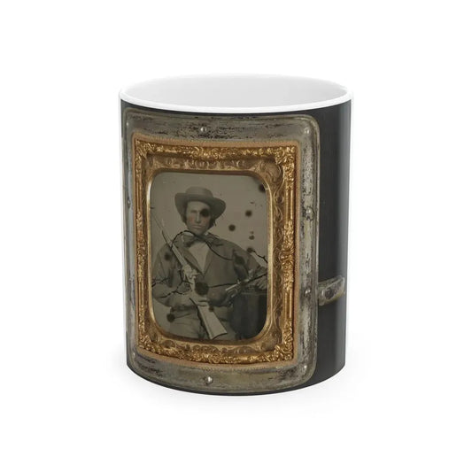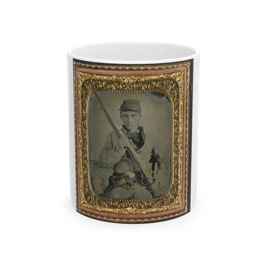 Unidentified Soldier In Confederate Infantry Uniform With Musket And Brass Framed Revolver (U.S. Civil War) White Coffee Mug