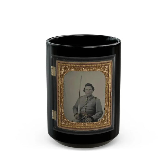 Unidentified Soldier In Confederate Lieutenant Uniform And Cs Belt Buckle With Cavalry Sword (U.S. Civil War) Black Coffee Mug