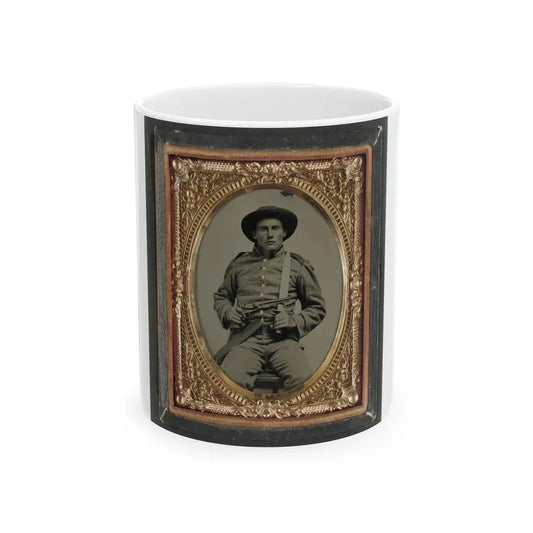 Unidentified Soldier In Confederate Infantry Uniform With Musket And Bowie Knife (U.S. Civil War) White Coffee Mug