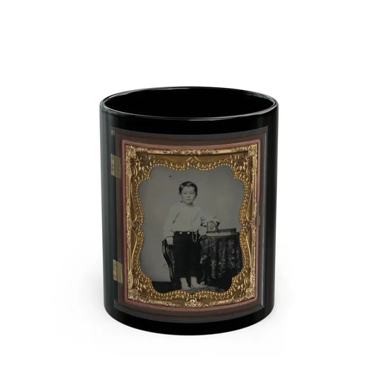 Unidentified Boy Holding Cased Photograph Of Soldier In Confederate Uniform Atop A Bible (U.S. Civil War) Black Coffee Mug