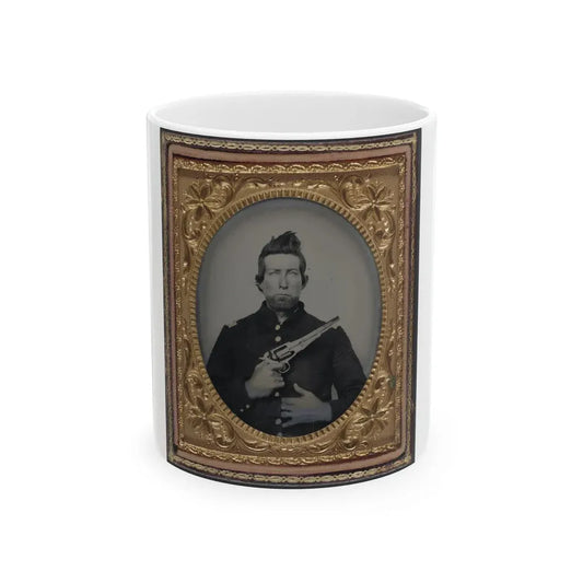 Unidentified Cavalry Soldier In Union Frock Coat With Remington New Model Army Revolver (U.S. Civil War) White Coffee Mug