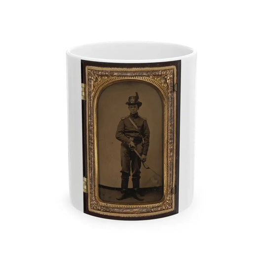 Unidentified Cavalry Soldier In Union Uniform And Co. C, 1st Regiment Hardee Hat With Sword (U.S. Civil War) White Coffee Mug