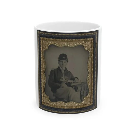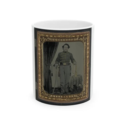 Unidentified Cavalry Soldier In Union Shell Jacket And Forage Cap With 1840 Cavalry Saber (U.S. Civil War) White Coffee Mug