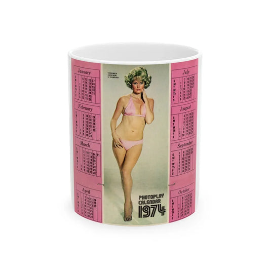 Veronica Carlson #132 - Vintage 17x11 Color Pink Bikini Full Body Cheesecake Photoplay Centerfold Magazine Calender 1974 (Vintage Female Icon) White Coffee Mug